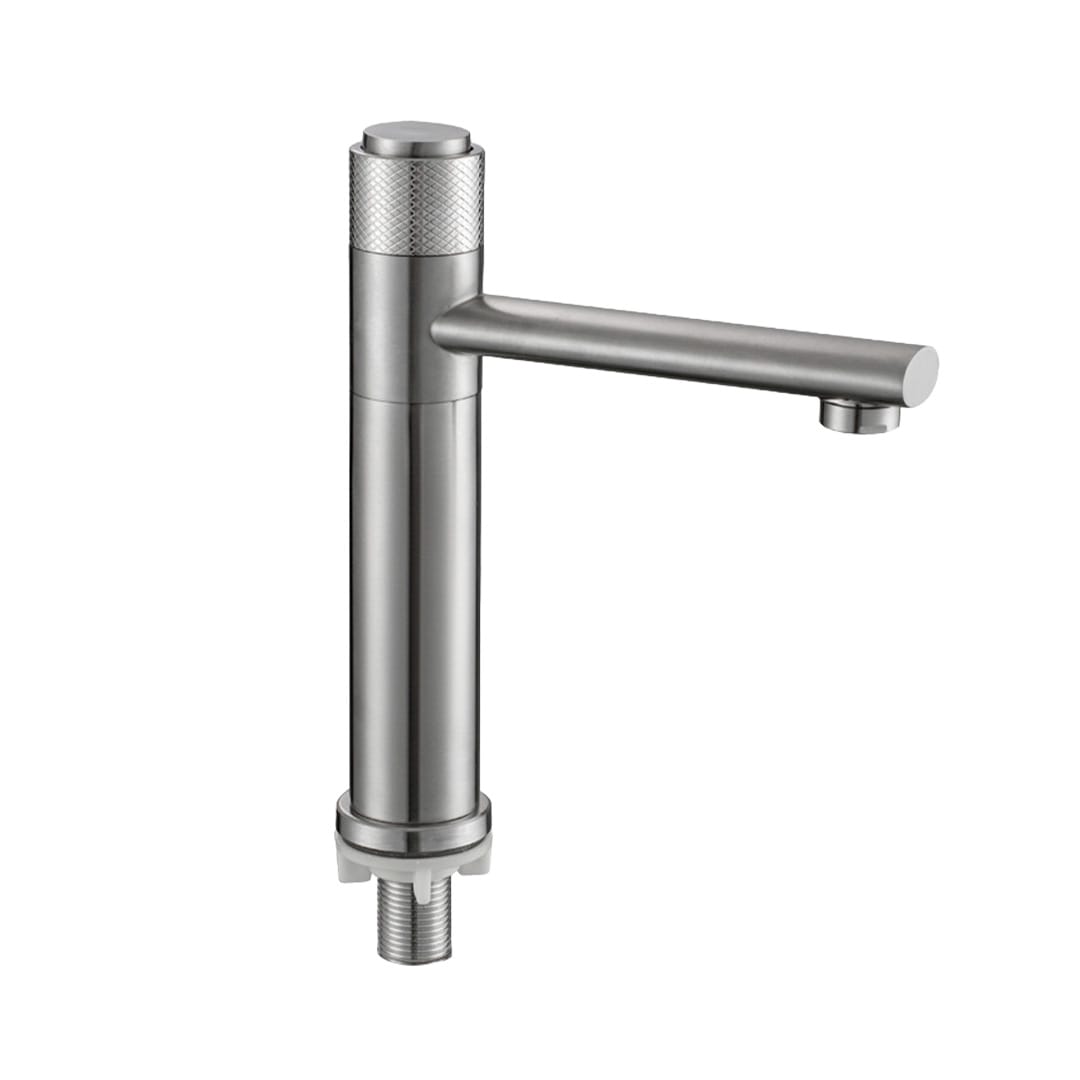 Keran wastafel ini berfungsi untuk mengalirkan air dingin secara efisien, cocok untuk penggunaan di wastafel dapur atau kamar mandi. Dengan fitur putaran 360 derajat, keran ini memberikan fleksibilitas tinggi untuk mengarahkan aliran air ke berbagai sudut. Material stainless steel 304 yang tahan karat memiliki daya tahan yang baik serta kemudahan dalam perawatan sehari-hari.