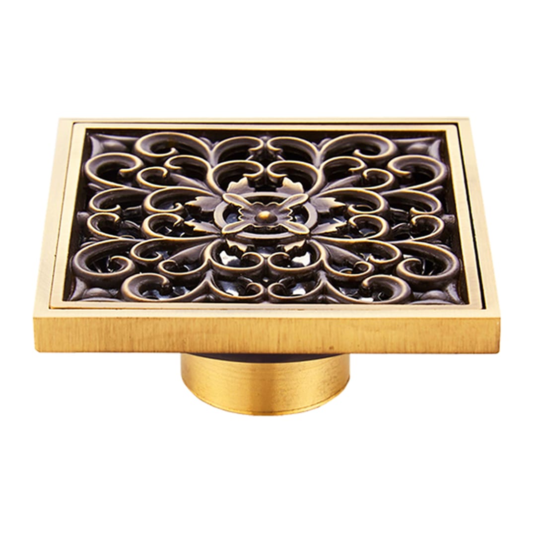 Saluran pembuangan lantai dengan penutup bermotif ini berfungsi untuk mengalirkan air dari permukaan lantai ke sistem pembuangan utama. Desain elegan dan motif yang timbul pada penutup memberikan sentuhan estetika yang tinggi, meningkatkan nilai artistik dan kemewahan ruangan. Selain fungsinya yang praktis, komponen ini juga mampu mempercantik interior ruangan secara keseluruhan.